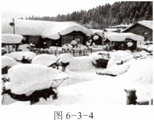 (4)高铁成为中国发展的一张新名片,缩短了城际、省际的距离,例如从济南直达长春仅需7小时左右,坐火车进行长途旅行不再是难熬的事。来到东北雪乡发现当地的民居如图6-3-4所示,请分析当地民居特点与自然环境的关系。