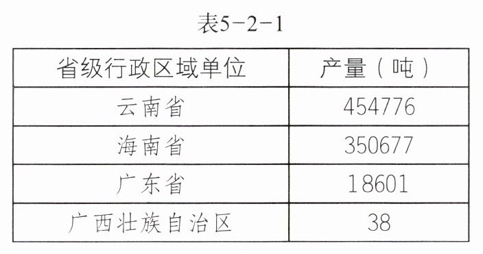 橡胶是一种热带经济作物。表5-2-1所示为我国橡胶产量(2018年)最多的四个省级行政区域单位(未含港澳台),据此完成7~8题。