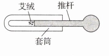 14. 如图所示,在空气压缩引火仪玻璃筒的底部放一小撮干燥的棉絮,用力将活塞迅速向下压,棉絮燃烧起来,此实验得到的结论是:对筒内气体做功,它的内能会增加。其能量转化情况与单缸四冲程汽油机的__________冲程相同,若汽油机飞轮的转速是3 600 r/min,则此汽油机每秒对外做功__________次。