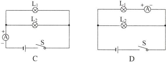 3(2024·晋中期中)在如图所示电路中,开关S闭合后,能正确测出通过灯L₁中电流的是( )