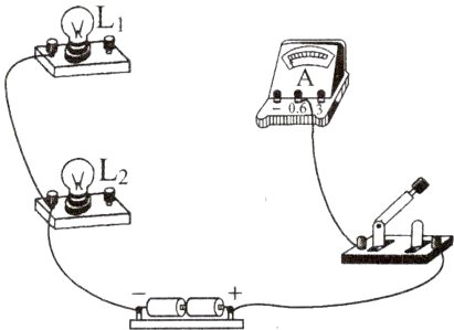 【解析】由题知,两个灯泡并联,开关在干路上控制整个电路;电流表测通过灯$L_{1}$的电流,则电流表与灯泡串联在一条支路中。