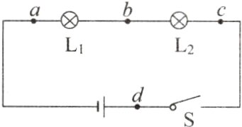 A 根据电路图可知,两个灯泡串联接入电路中;闭合开关后两灯均不亮,这说明电路出现了开路故障;用电压表先后测得$ad$、$ac$和$ab$两端的电压均为$4.5\ V$,这说明$a$到电源负极、$b$到电源正极之间是接通的,所以故障是$ab$之间出现了开路现象,即灯$L_{1}$开路。
