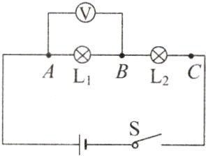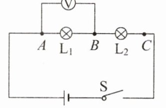 (1)为了保护电路,连接电路时开关$S$处于断开状态,故 A 正确;为了不超过程程,所以电压表可通过试触来选择合适的量程,故 B 正确;测量完$L_{1}$两端的电压后,在测量$L_{2}$两端的电压时,将电压表$A$接点连线转接至$C$接点,这样导致电压表正负接线柱接反了,不能测量出$L_{2}$两端电压,故 C 错误;