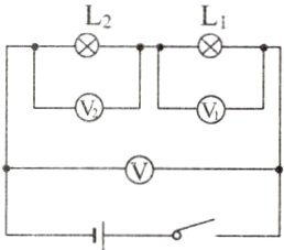 【解析】由电路图可知,闭合开关,两个灯泡串联,电压表$V_{1}$测$L_{1}$两端的电压,电压表$V_{2}$测$L_{2}$两端的电压,电压表$V$测电源电压,所以电路的电源电压为$U = 4.5\ V$,灯$L_{1}$两端的电压为$U_{1}=2.5\ V$,因为串联电路两端的电压等于各部分电路两端的电压之和,所以灯$L_{2}$两端的电压为$U_{2}=U - U_{1}=4.5\ V - 2.5\ V = 2\ V$。