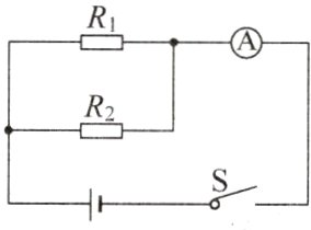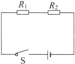 8 如图所示的电路,电阻$R_1:R_2 = 1:2$,则通过它们的电流之比为$I_1:I_2 =$______,它们两端的电压之比为$U_1:U_2 =$______。