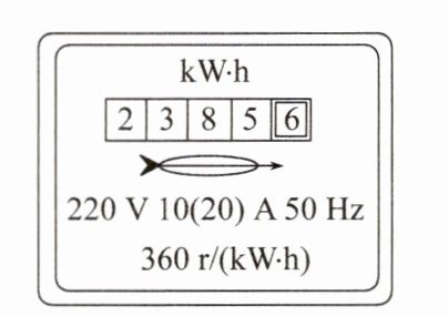 6. 小美观察到家中的电能表如图所示,根据表盘的信息,下列选项中正确的是 ( )