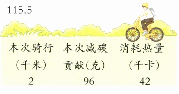 1. 新情境·绿色环保 林叔叔是绿色出行的践行者,他从家出发骑共享单车到公司后手机某APP显示如下。林叔叔每周有20次这样的骑行,他每周的减碳贡献一共是多少克?(6分)