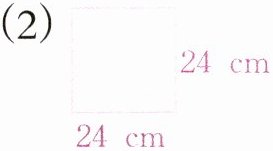 【点拨】长方形的面积 = 长×宽,代入数据计算即可。@@24×24 = 576(cm²)