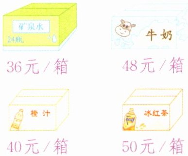 【点拨】每箱矿泉水的钱数×买矿泉水的箱数 = 一共需要的钱数。