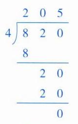 820÷4=205