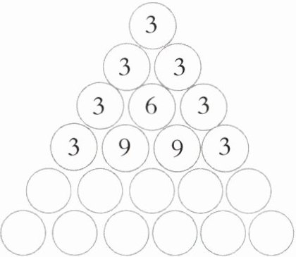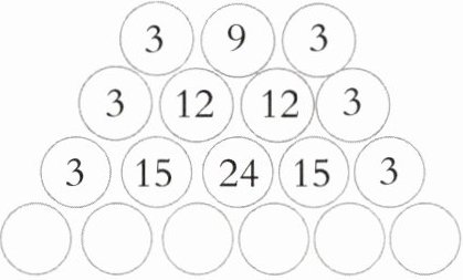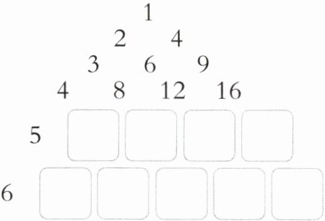 4. 找规律,第 4 行应该填哪些数?填一填。