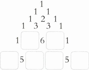 27@@52@@第五行第一个数“15”是通过第四行的最后一个数得来的。@@从第二行起,除每行第一个数外,每行其他任何一个数等于它左边相邻数加左边相邻数上一行的数。