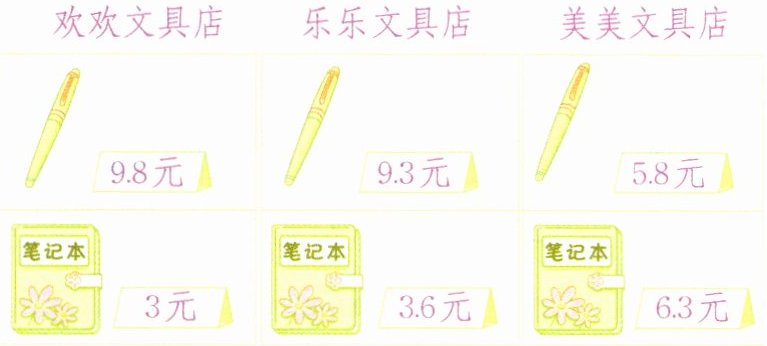 5. 请把 3 个文具店同一种商品的价格按从低到高的顺序排一排。