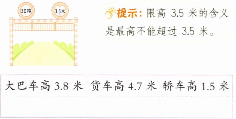 4.(易错题) 哪种车能从这个路口通过?能通过的在表格里画“√”。