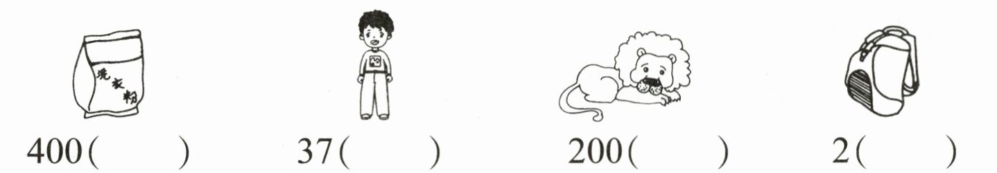 2. 在 ( ) 里填上“克”或“千克”。(4分)