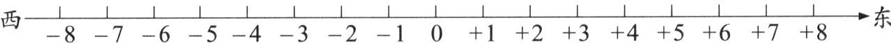 (1)+5 (2)东 3 (3)西 10 (4)+4
