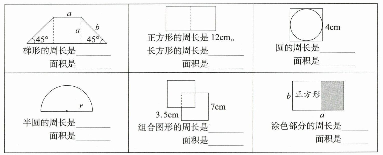 5. 计算下面图形的周长和面积。