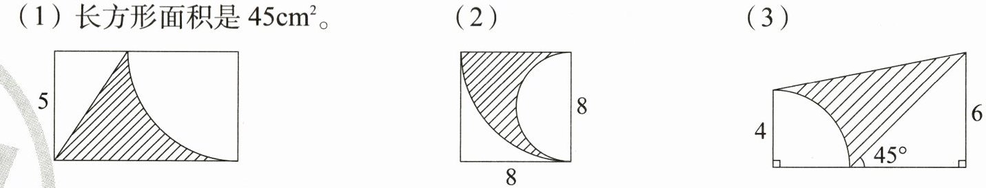 (2)$\frac{1}{4}$×3.14×8²−$\frac{1}{2}$×3.14×($\frac{8}{2}$)² = 25.12(cm²)