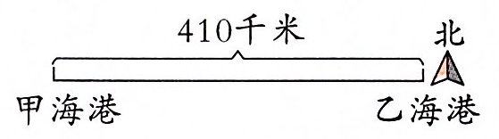 五 一艘轮船每小时大约行驶 35 千米,一艘货船从甲海港出发向东行驶,13 小时后,该货船是在乙海港的东面还是西面?距乙海港多少千米?