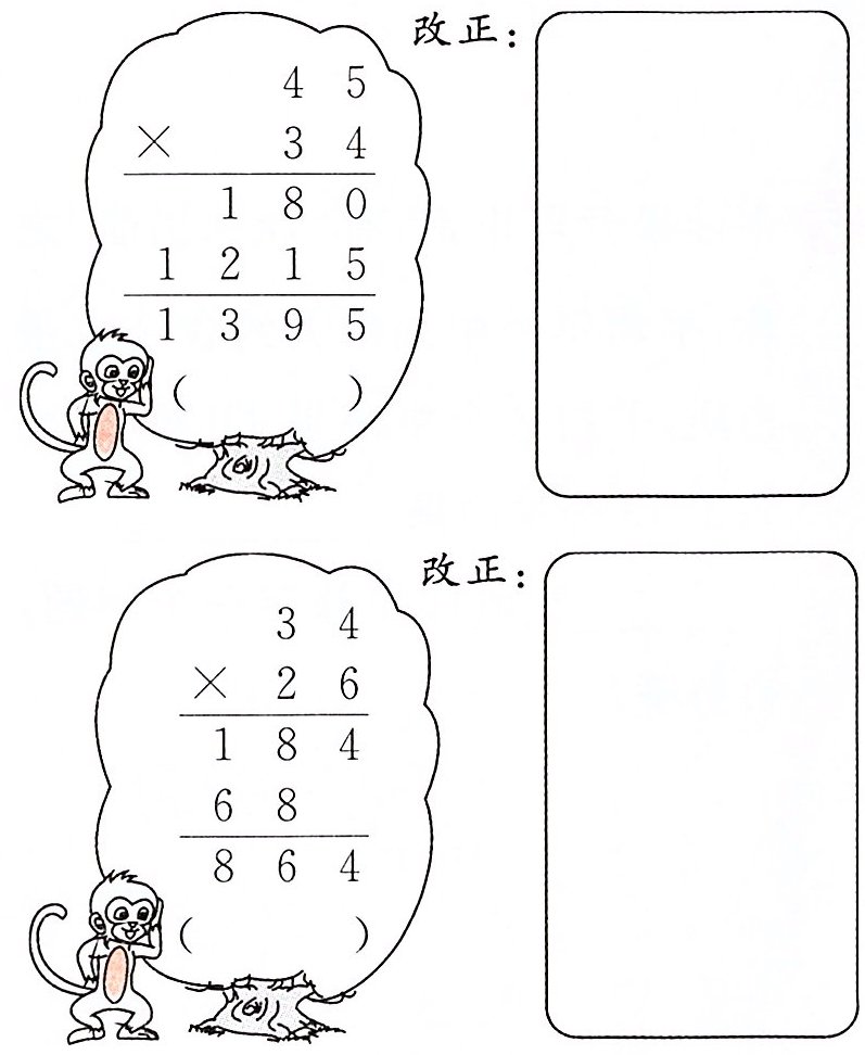 二 粗心的小猴子。(判断对错,并改正)