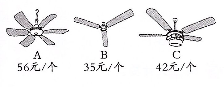 四 8间教室安装同样的吊扇,每间教室安装4个吊扇。学校预算这些吊扇的总钱数为1300~1400元,那么学校应该采购哪种吊扇?