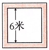 3. 如图,有一个边长为 6 米的正方形花坛,在四周铺上 1 米宽的步行道。步行道的面积是( )平方米;如果步行道用长 2 分米、宽 1 分米的长方形地砖铺设,需要( )块这样的地砖。