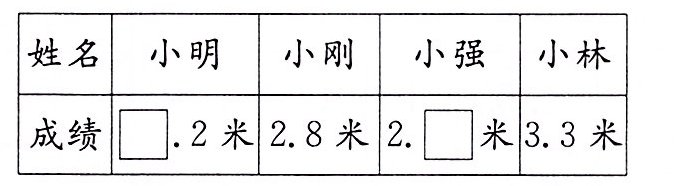 (2)如果小强是第四名,那么他最多跳了( )米。