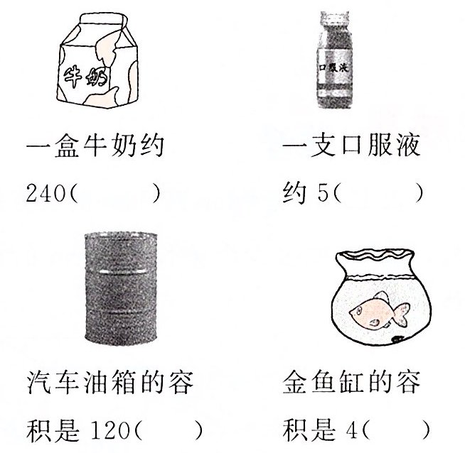 3. 计量液体的体积,如水、油等,常用容积单位()和(),也可以写成()和()。