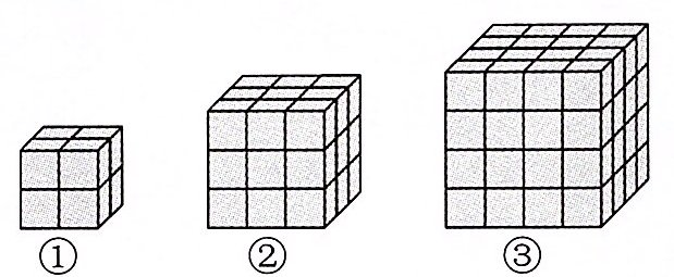 一 用棱长1cm的小正方体拼成如下的大正方体后,把它们的表面分别涂上颜色,数一数三面、两面、一面涂色以及没有涂色的小正方体各有多少块?