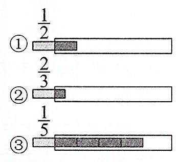 七 下面的长方形纸条被遮住了一部分,露出部分的长度相等,露出部分占长方形纸条的长度如图所示,请你将各纸条画完整并填空。