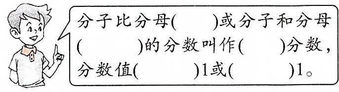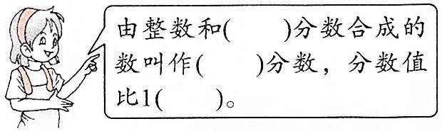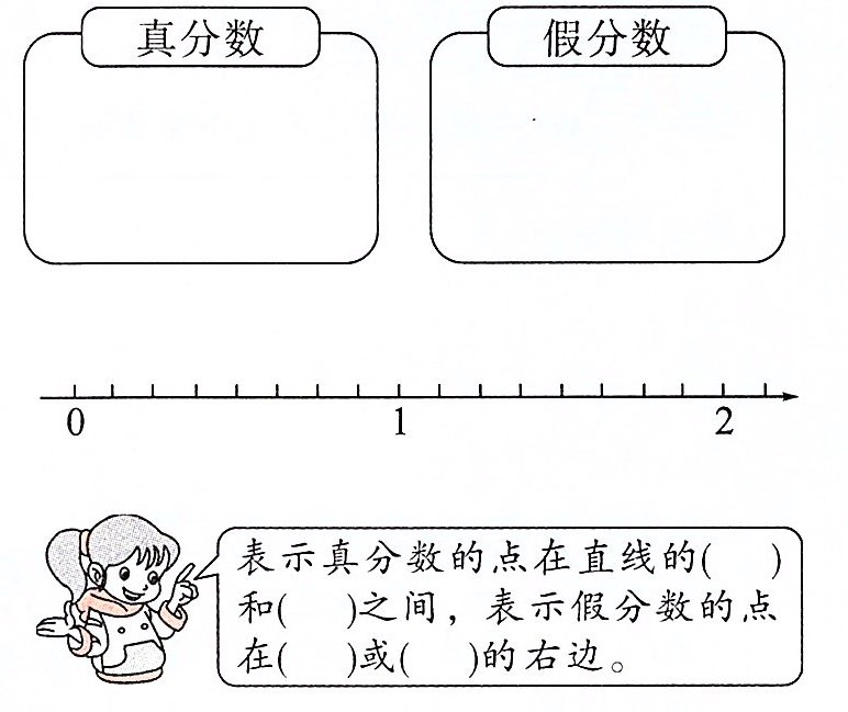 三 下面的分数中哪些是真分数?哪些是假分数?并在直线上表示出来。