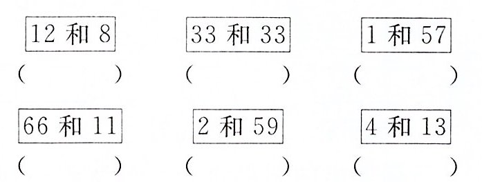 三 在具有因数和倍数关系的卡片下面画“√”,反之则画“×”。
