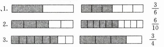 1. 写出 4 个与$\frac{3}{4}$相等的分数( )。