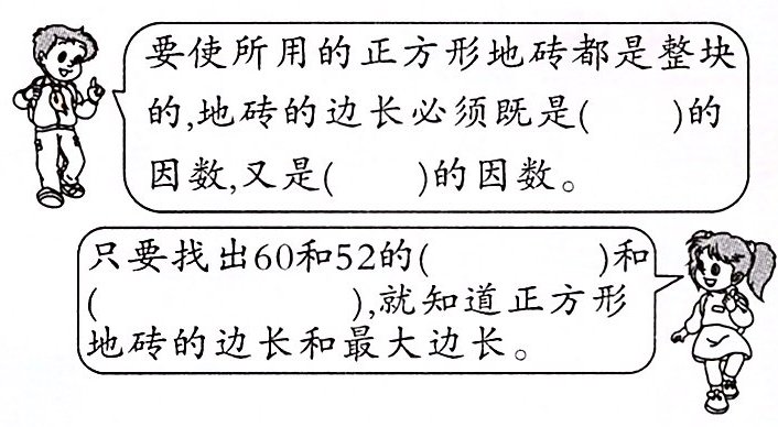 二 如果用边长为整分米数的正方形地砖铺满小亮家的客厅(如图所示),可以选择边长是多少分米的地砖?边长最大是多少分米?(使用的地砖都是整块)