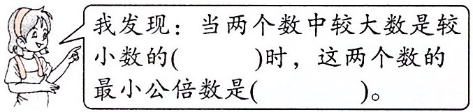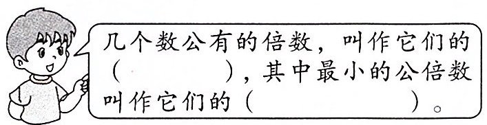 我发现:6和8有相同的倍数,它们是( )。我们把6和8公有的倍数叫作6和8的( )。其中,( )是最小的公倍数,叫作它们的最小公倍数。