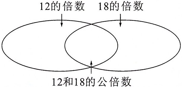 二 把100以内12和18的倍数、公倍数填在相应的位置,并写出它们的最小公倍数。