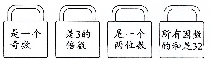 六 有一把钥匙同时开下面四把锁。请你根据下面的信息找到钥匙的密码。