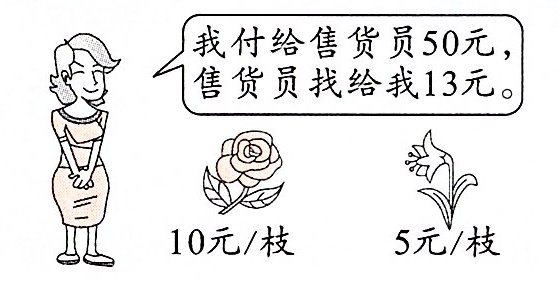 答:不对。因为买花的钱应该是5的倍数,而50 - 13 = 37,37不是5的倍数。