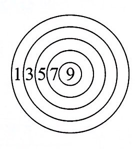 五 下图是一个靶,靶上的 1,3,5,7,9 表示射中该靶区的分数。丁丁说:“我打了 6 枪,每枪都中靶,总分是 27 分。”明明说:“我打了 5 枪,每枪都中靶,总分是 27 分。”你知道他们两人中谁说了假话吗?为什么?