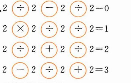五 在〇里填上适当的运算符号,使等式两边相等。
