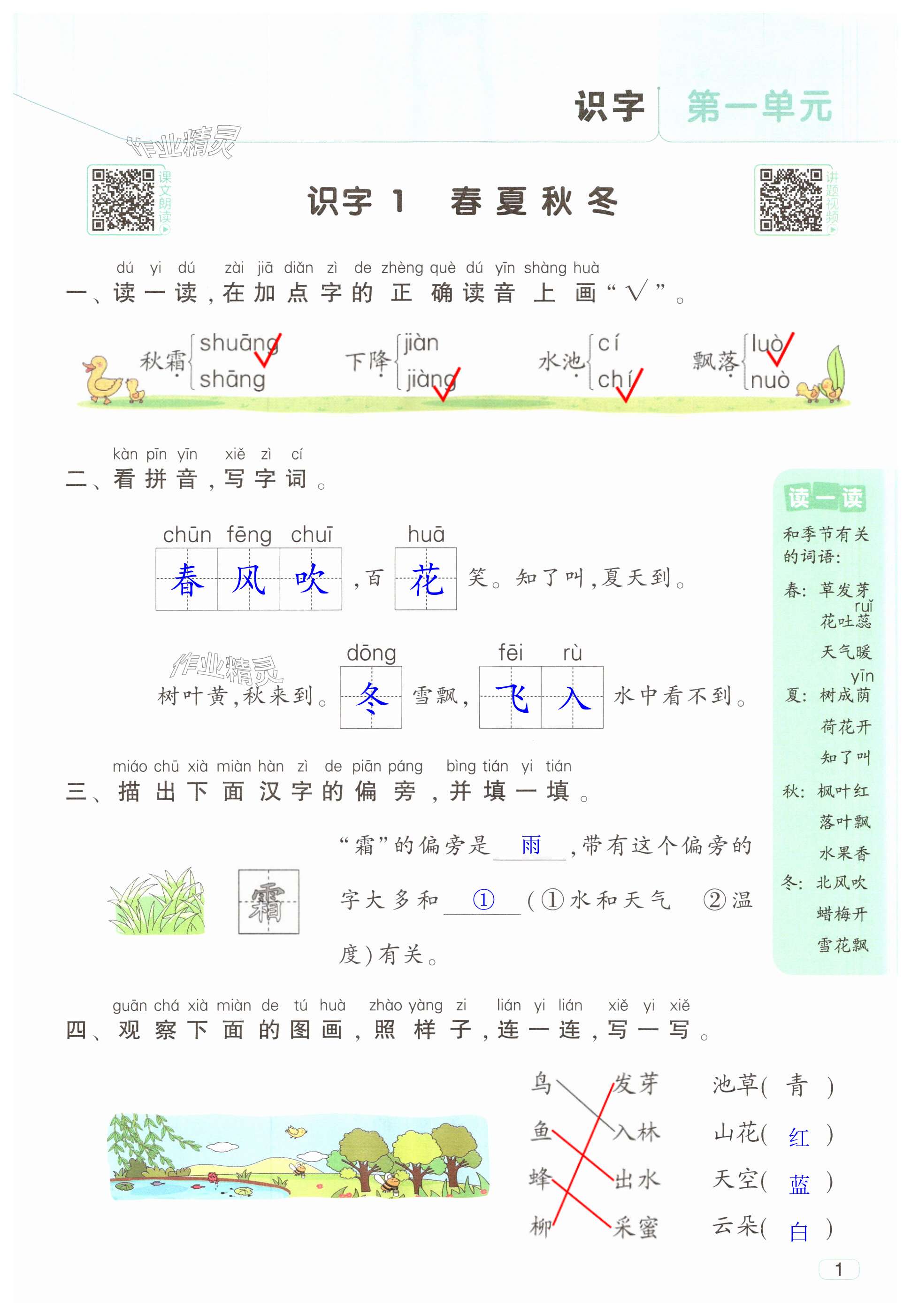 注:目前有些书本章节名称可能整理的还不是很完善,但都是按照顺序排列的,请同学们按照顺序仔细查找。练习册 2025年经纶学典提高班一年级语文下册人教版 答案主要是用来给同学们做完题方便对答案用的,请勿直接抄袭。