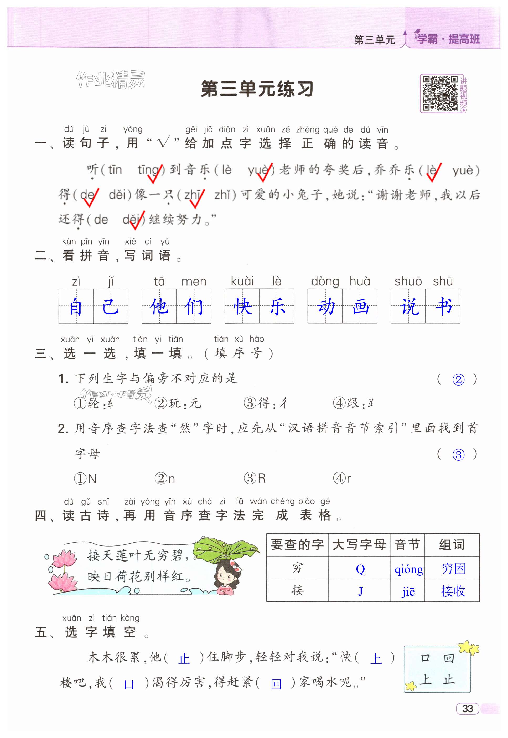 注:目前有些书本章节名称可能整理的还不是很完善,但都是按照顺序排列的,请同学们按照顺序仔细查找。练习册 2025年经纶学典提高班一年级语文下册人教版 答案主要是用来给同学们做完题方便对答案用的,请勿直接抄袭。