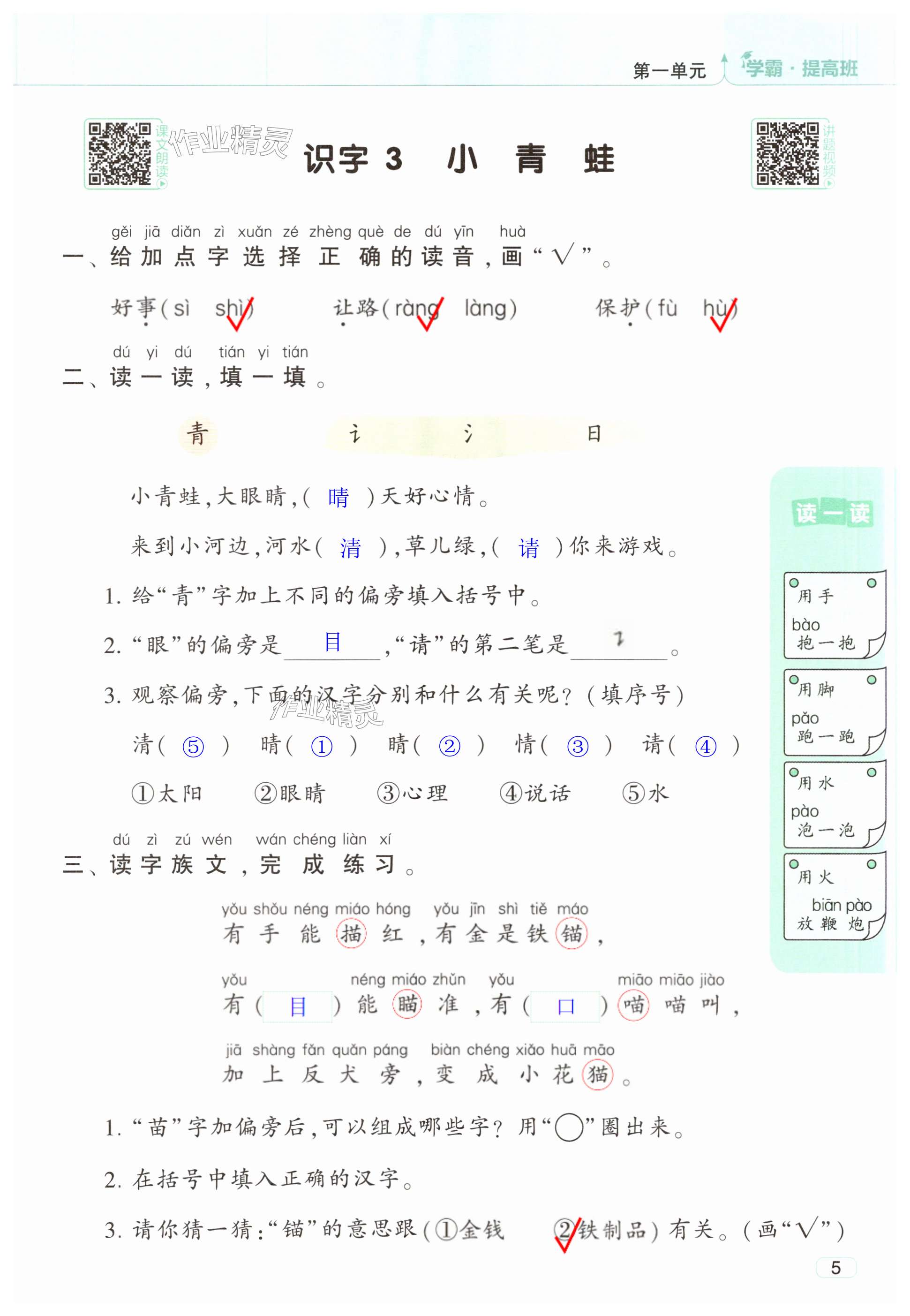 注:目前有些书本章节名称可能整理的还不是很完善,但都是按照顺序排列的,请同学们按照顺序仔细查找。练习册 2025年经纶学典提高班一年级语文下册人教版 答案主要是用来给同学们做完题方便对答案用的,请勿直接抄袭。