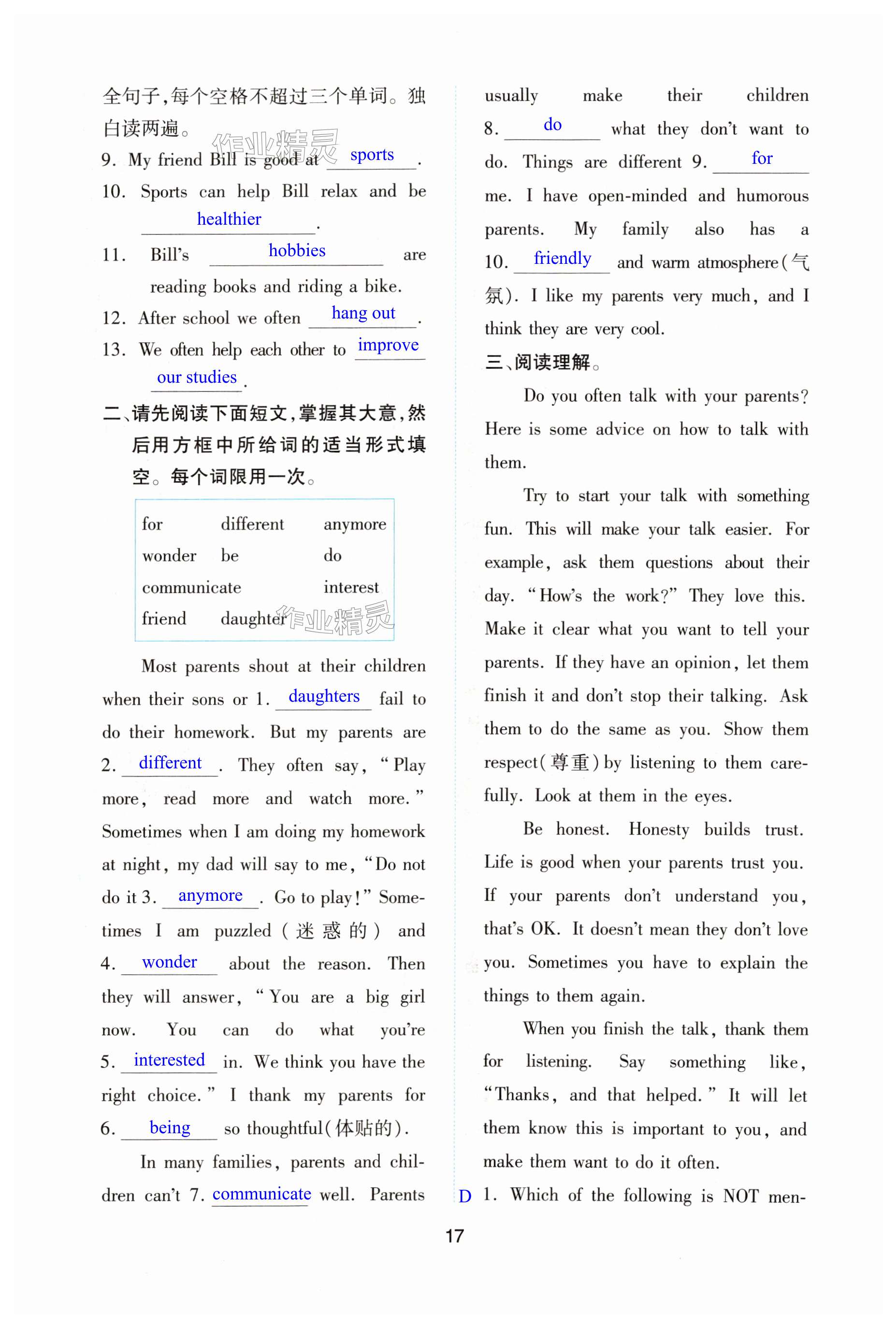 注:目前有些书本章节名称可能整理的还不是很完善,但都是按照顺序排列的,请同学们按照顺序仔细查找。练习册 2025年一课一练创新练习八年级英语下册人教版 答案主要是用来给同学们做完题方便对答案用的,请勿直接抄袭。