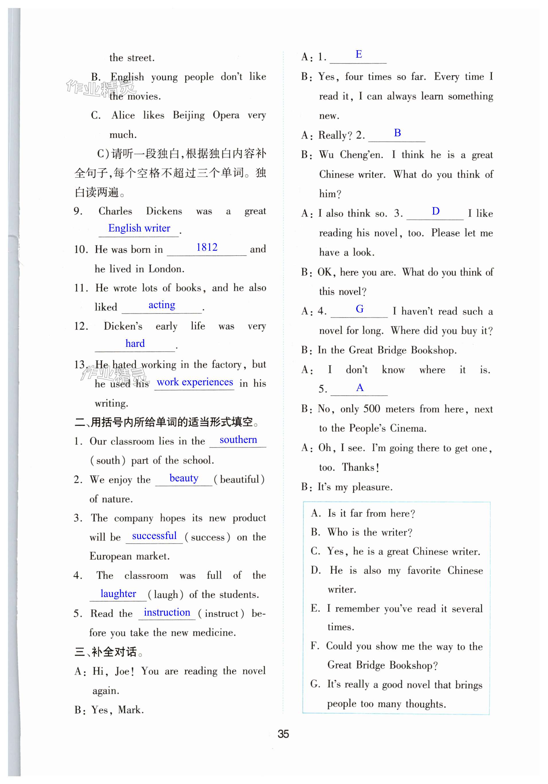 注:目前有些书本章节名称可能整理的还不是很完善,但都是按照顺序排列的,请同学们按照顺序仔细查找。练习册 2025年一课一练创新练习八年级英语下册人教版 答案主要是用来给同学们做完题方便对答案用的,请勿直接抄袭。