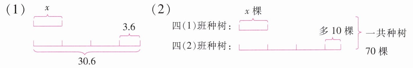 (1) $3x + 3.6 = 30.6$,$x = 9$