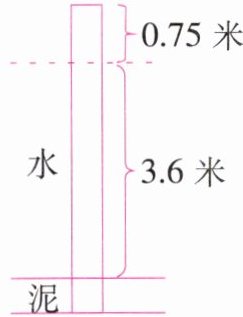 4. 把一根竹竿竖直插入水中,深入泥里。已知水深 3.6 米,比竹竿入泥部分长 3.2 米,竹竿露在空气中的部分长 0.75 米。这根竹竿有多长?