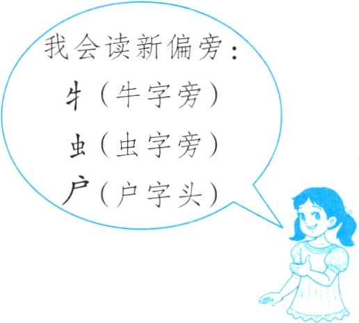 我会读新偏旁:牜(牛字旁) 虫(虫字旁) 户(户字头)