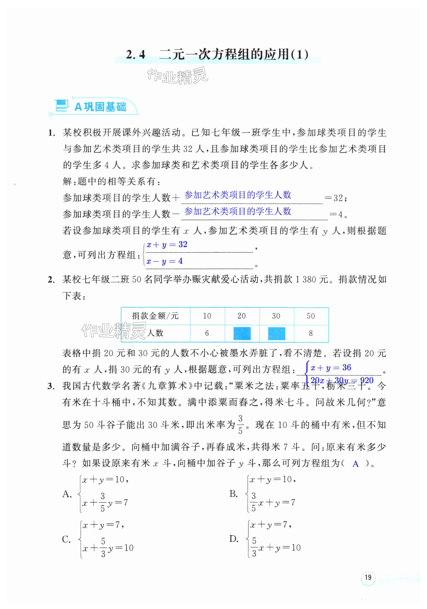 注:目前有些书本章节名称可能整理的还不是很完善,但都是按照顺序排列的,请同学们按照顺序仔细查找。练习册 2025年作业本浙江教育出版社七年级数学下册浙教版 答案主要是用来给同学们做完题方便对答案用的,请勿直接抄袭。