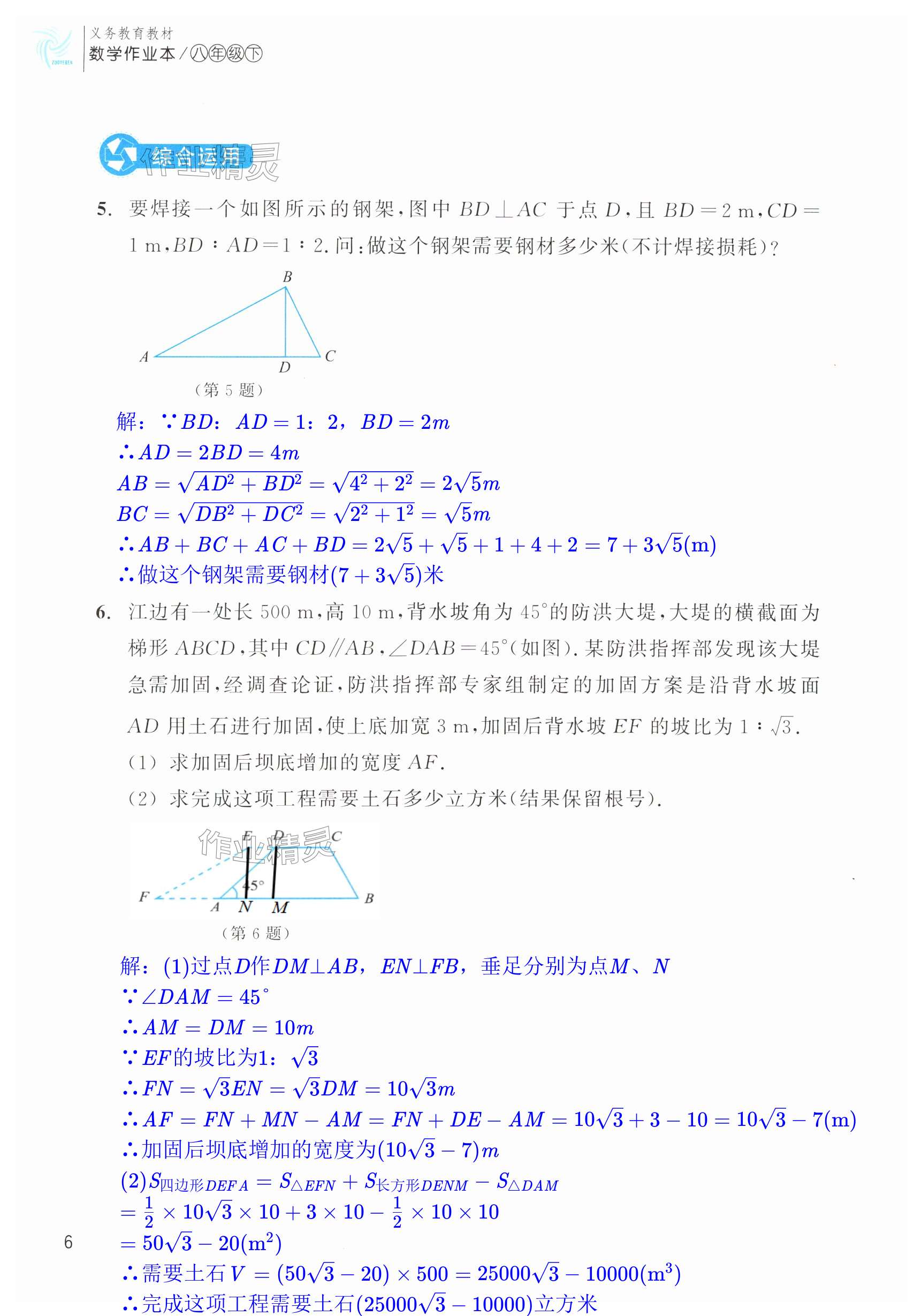 注:目前有些书本章节名称可能整理的还不是很完善,但都是按照顺序排列的,请同学们按照顺序仔细查找。练习册 2025年作业本浙江教育出版社八年级数学下册浙教版 答案主要是用来给同学们做完题方便对答案用的,请勿直接抄袭。